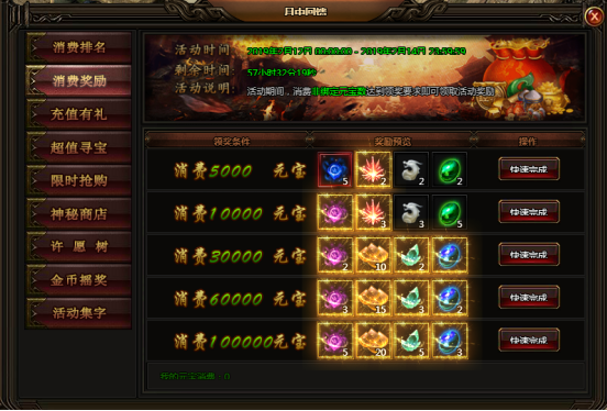 7.2月12日至2月14日,消耗一定的元宝进行许愿,有概率获得多倍奖励