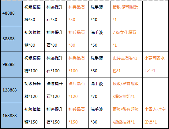 【活动内容】:活动期间累计消费达到一定额度即可全面返还豪礼!大量初级棒棒糖、神迹提升石、绕体の三色爱心、洗手液、超级/顶级技能包,极品道具不可错过!