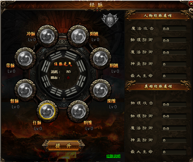 1.新增经脉系统,开服第25天、1转在体魄界面开启