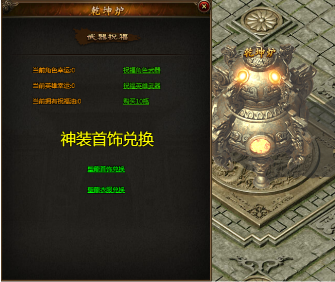 4.开服第8天中州神炉开启神装兑换,跨服boss地图内增加神装兑换材料