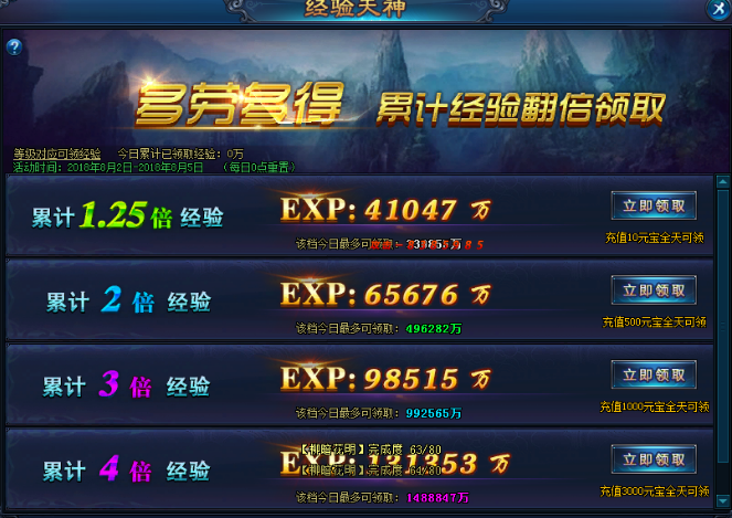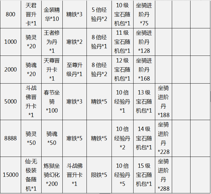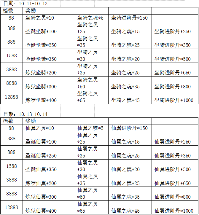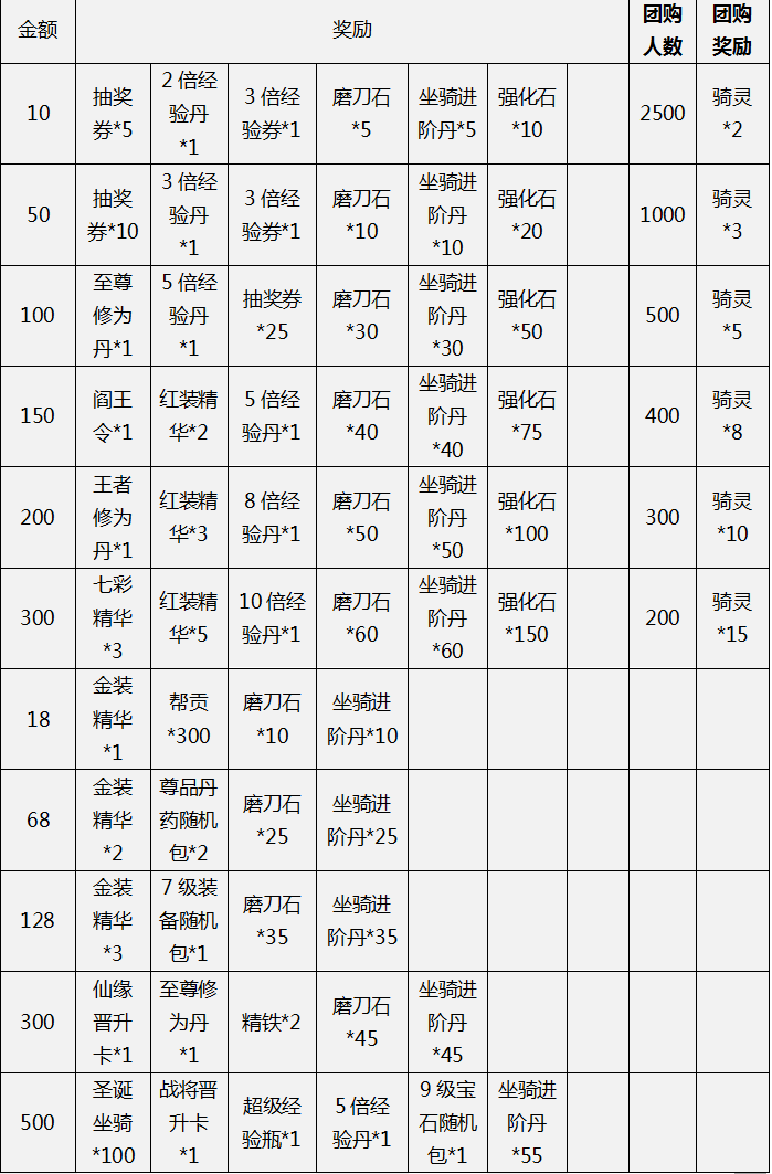 【活动内容】:充值对应金额,即可领取奖励