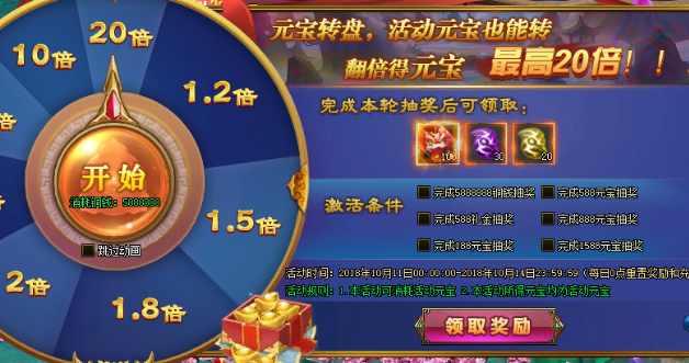 【活动内容】:活动期间,活动期间,玩家可通过充值获得兽首转盘次数,转动转盘可获得兽首奖励。