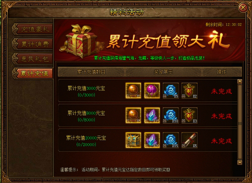【活动内容】:活动期间达到累计充值即可领取大量超值奖励!