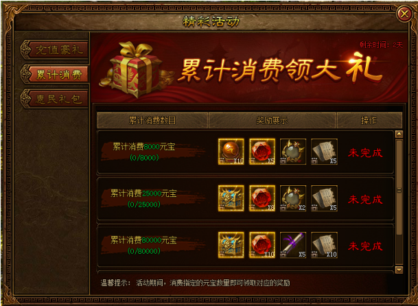 【活动内容】:活动期间达到累计消费元宝数即可领取大量超值奖励!