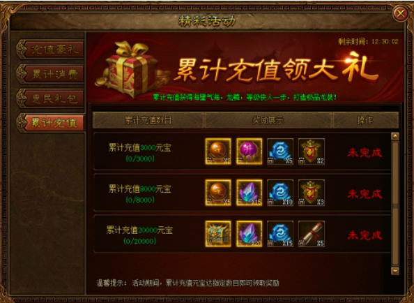 【活动内容】:活动期间达到累计充值即可领取大量超值奖励!