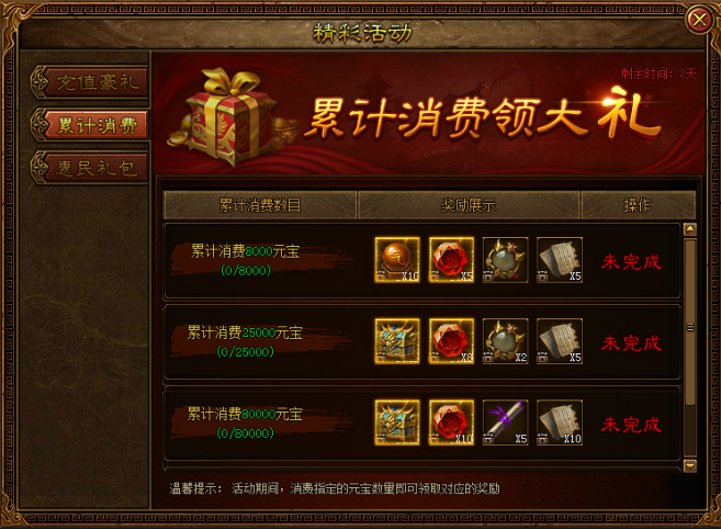 【活动内容】:活动期间达到累计消费元宝数即可领取大量超值奖励!