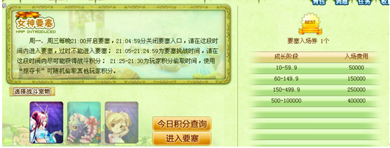 如果有入场券,但游戏币不足,则提示:你的游戏币不足,无法进入要塞。