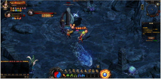 锁龙殿内BOSS将随机出现在某处, 可要当心它的偷袭哦,不小心被击中的话,会随机冰冻住一个目标,使目标在一定时间内无法移动