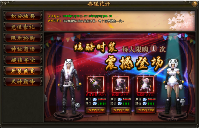 2.活动期间内,玩家可购买绝版活动时装,每个玩家限购一次