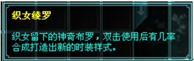 1、元宝商城上架新道具“织女绫罗”,售价50元宝,可用于时装合成。