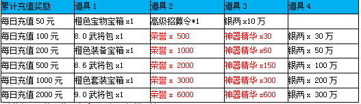 【活动内容】:活动期间,每日累计充值达到对应额度即可领取充值奖励!