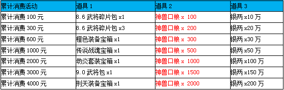 【活动内容】:活动期间,累计消费达到对应额度即可领取充值奖励!