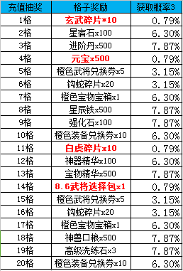 三国之志2—【公告】充值抽奖概率表