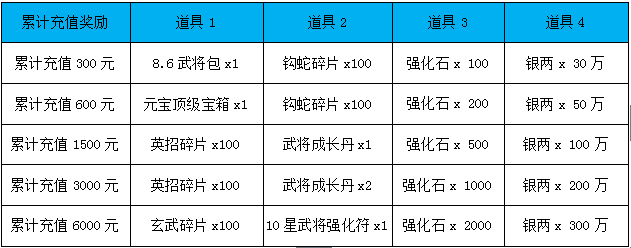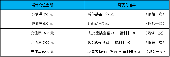【活动内容】:活动期间,累计充值达到对应额度即可领取充值奖励!