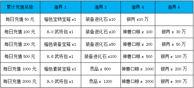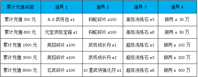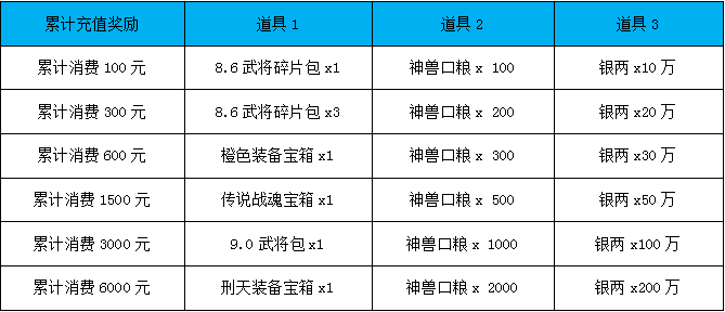 【活动内容】:活动期间,累计充值达到对应额度即可领取充值奖励!