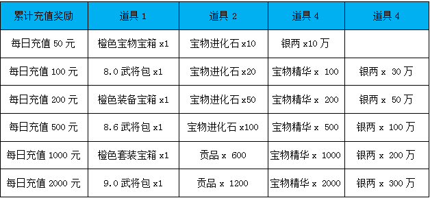 【活动内容】:活动期间,每日累计充值达到对应额度即可领取充值奖励!