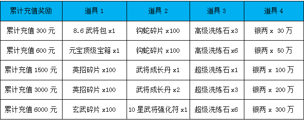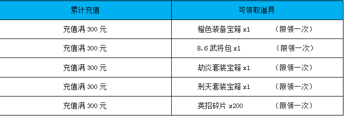 【活动内容】:活动期间,累计充值达到对应额度即可领取充值奖励!