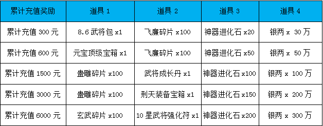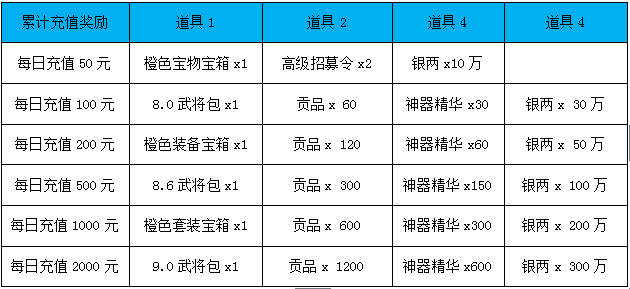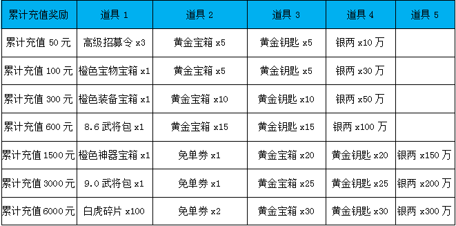 【活动内容】:活动期间,累计充值达到对应额度即可领取充值奖励!