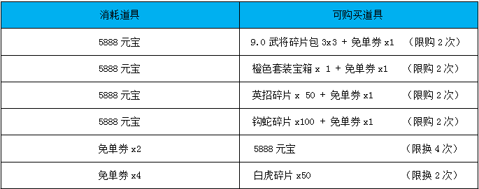 1)9.0武将碎片包3:赵云碎片x10、孙策碎片x10、郭嘉碎片x10、贾诩碎片x10四选一