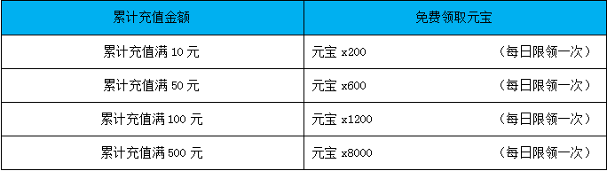 【活动内容】:活动期间,累计充值达到指定金额,即可领取额外累充奖励。