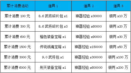 【活动内容】:活动期间,累计消费达到对应额度即可领取充值奖励!