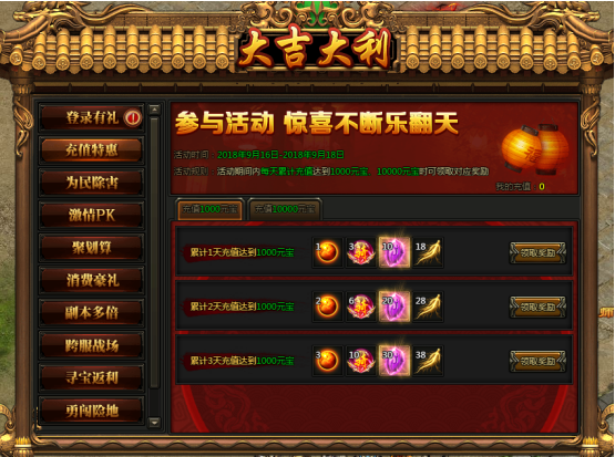 【活动规则】:活动期间累计充值达到需求时可领取对应奖励