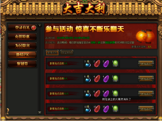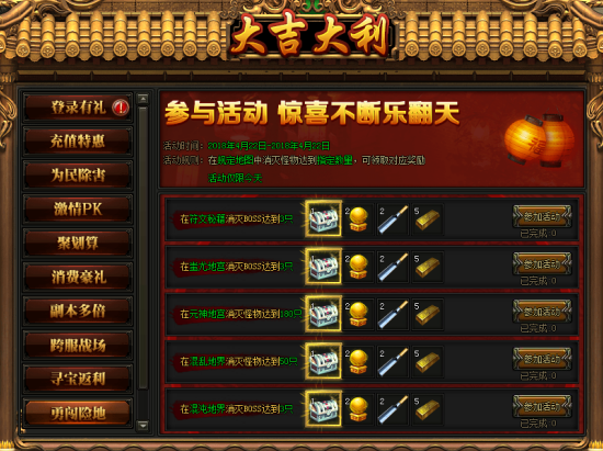 【活动规则】:活动期间,每日参加指定活动并击败人数达到指定数额时可领取对应奖励