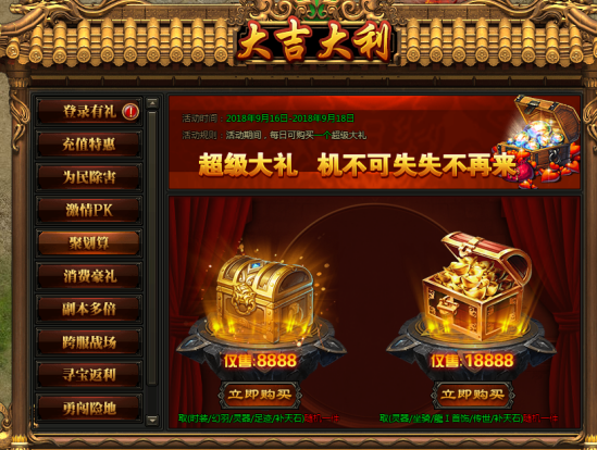 【活动规则】:活动期间,每日可购买一个超级大礼,机不可失失不再来