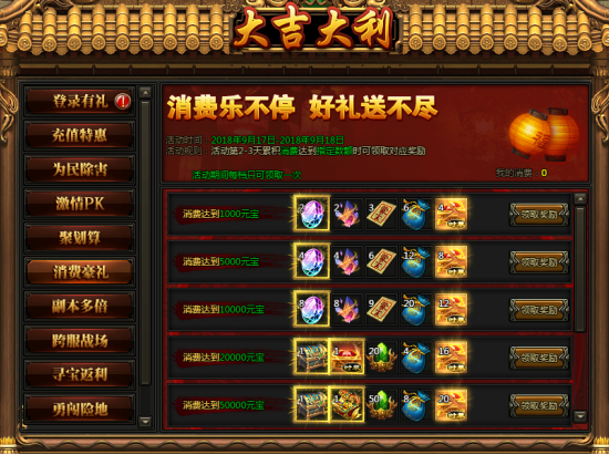 【活动规则】:活动2-3天累计消费达到指定数额时可领取对应奖励,活动期间每档只可领取一次