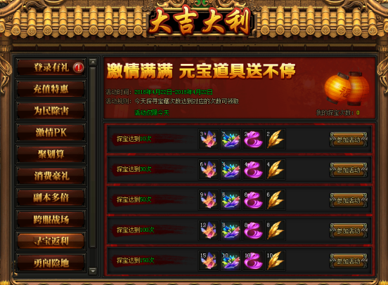 【活动规则】:今天探寻宝藏次数达到对应的次数可领取奖励