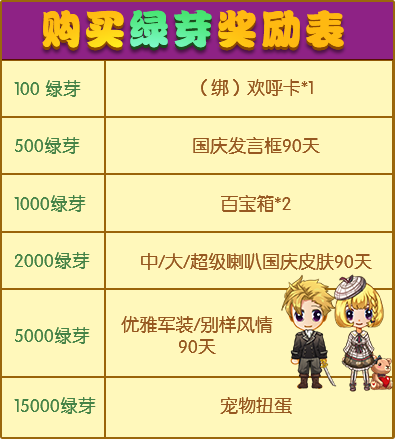 【活动内容】:祈愿神树显灵了!一种令人舒缓、幸福的光芒笼罩着整个推理之都!在活动期间,为欢度国庆,通过祈愿购买绿芽达到相应数量即可获得奖励!还有宠物扭蛋等你拿哦!