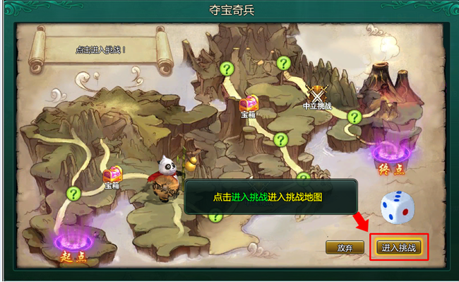 3.进入挑战地图后,会有需要完成的任务提示框,顺利完成指定任务即可过关,再次摇骰子继续前进;若失败,则不能再继续前进。