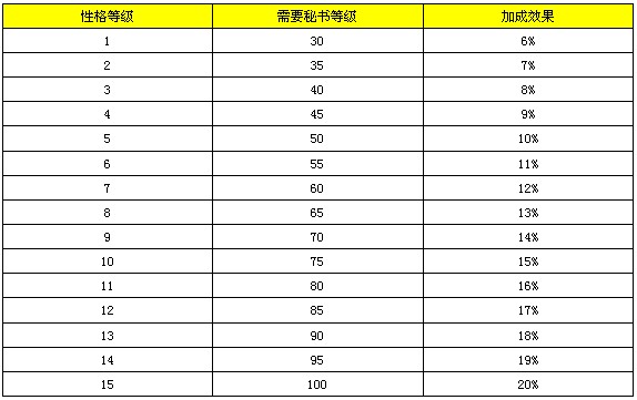 每个秘书只可拥有一种性格,性格可对特定秘书技能产生附加效果。