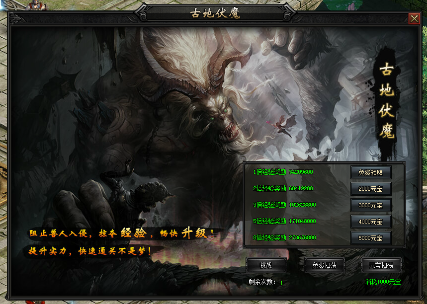 古地伏魔是《血饮传说》游戏中经验奖励最丰富的日常任务,带有一定趣味的玩法,一改任务繁琐的通病,在比奇省找到NPC任锋炊进入副本。