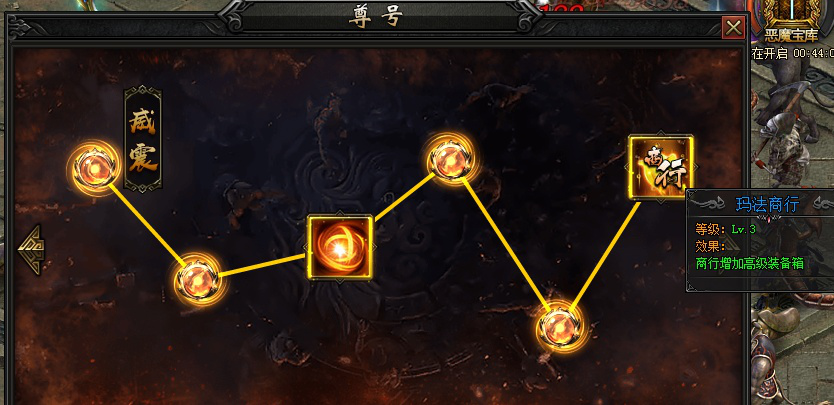 可以通过尊号系统来提升玛法商行等级,等级越高,可购买的道具越稀有。