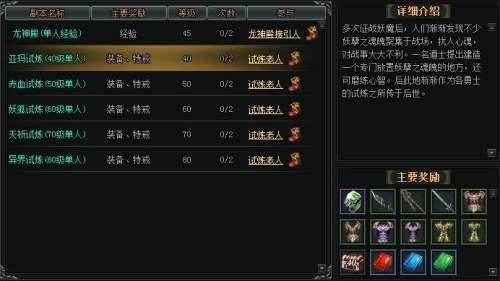 试炼之地是一个单人装备副本,会随着等级的提升开启新的副本