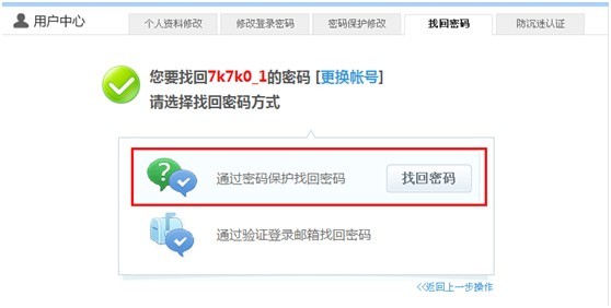 ③ 确认要找回密码的账号,选择通过密码保护找回密码按照提示步骤操作即可。